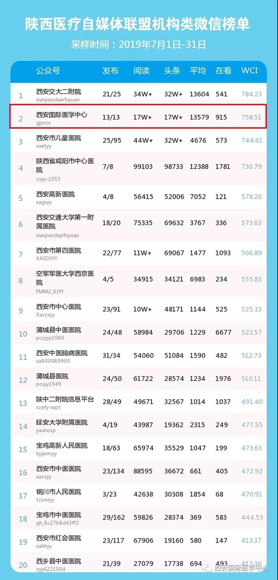 陜西醫(yī)療自媒體聯(lián)盟7月份機(jī)構(gòu)類微信榜單