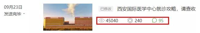 西安國際醫(yī)學(xué)中心開業(yè)以來,得到社會(huì)各界的廣泛支持與認(rèn)可,新華網(wǎng)、人民網(wǎng)、央廣網(wǎng)、中國新聞社、健康時(shí)報(bào)、人民日?qǐng)?bào)海外網(wǎng)、陜西日?qǐng)?bào)、陜西人民廣播電臺(tái)、西安日?qǐng)?bào)、西安晚報(bào)、華商報(bào)、西部網(wǎng)、新浪、搜狐、今日頭條、榮耀西安等各大主流媒體、融媒體走進(jìn)西安國際醫(yī)學(xué)中心,進(jìn)行了一輪又一輪的的報(bào)道,獲得數(shù)萬網(wǎng)友點(diǎn)贊、熱評(píng)。同時(shí),西安國際醫(yī)學(xué)中心微信公眾號(hào)屢次榮獲陜西醫(yī)療自媒體聯(lián)盟醫(yī)療機(jī)構(gòu)類榜單第2名,“狀元文”《西安國際醫(yī)學(xué)中心就診攻略,請(qǐng)查收》獲得了45040的閱讀量,榮登榜首。位列第二的《西安國際醫(yī)學(xué)中心最美全家福溫暖來襲!》更獲得52821的閱讀量。僅“十一”假期7天,西安國際醫(yī)學(xué)中心微信公眾號(hào)粉絲數(shù)新增10261人!