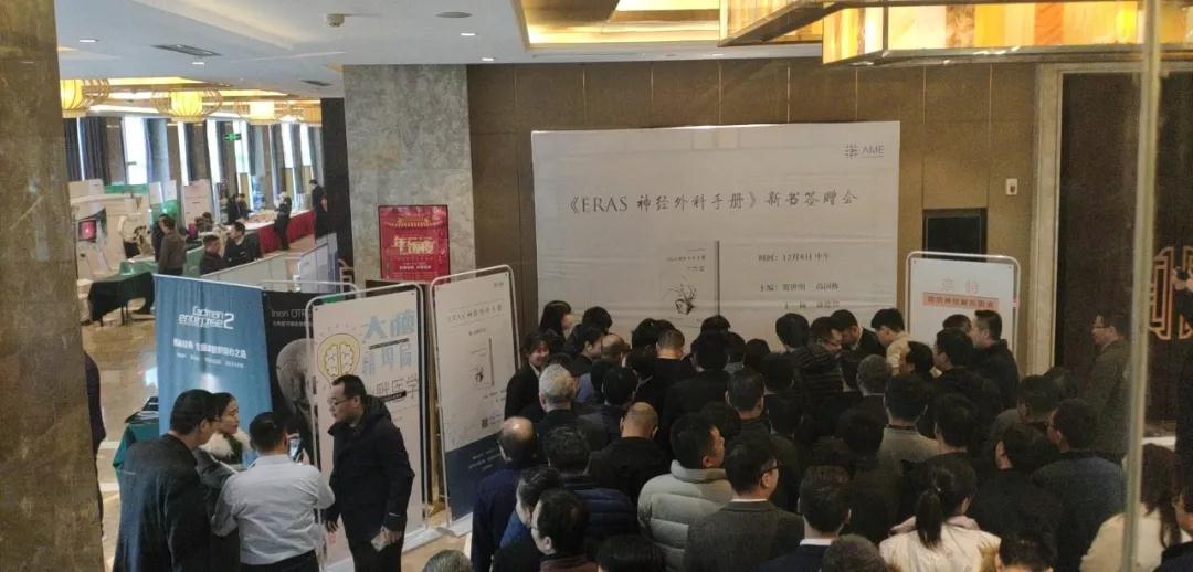 會上,AME汪道遠(yuǎn)社長、高國棟教授、賀世明教授為活動揭幕。隨后還舉行了《ERAS神經(jīng)外科手冊》簽贈活動。此書是我國首本將ERAS運(yùn)用于神經(jīng)外科后編著出來的手冊,在場的同仁期望頗高?;顒右婚_始,大家排起了長隊(duì),希望獲得各位專家的親筆簽名。在現(xiàn)場,大家就書中熱點(diǎn)展開討論。