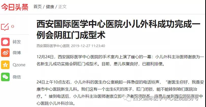12月24日,西安國際醫(yī)學中心醫(yī)院的手術室內上演了暖心的一幕:小兒外科主治醫(yī)師謝崇為一名新生兒成功實施會陰肛門成型術。目前,患兒恢復良好,已順利排便。