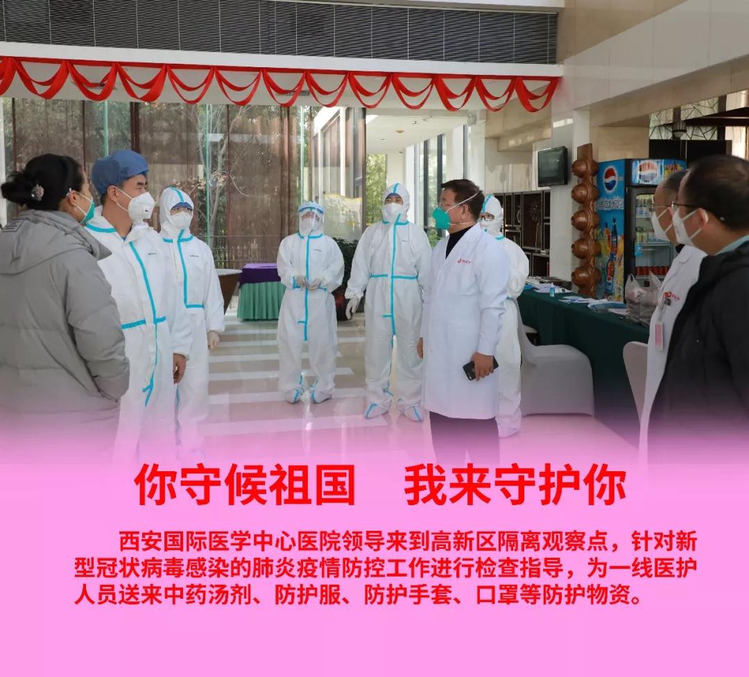 疫情防控是一場沒有硝煙的戰(zhàn)爭,這場戰(zhàn)爭牽動著每一個人的心弦。此前,院長尹強、總經理王志峰、副院長楊峰等,先后來到高新區(qū)隔離觀察點,為一線醫(yī)護人員送來中藥湯劑、防護服、防護手套、口罩等防護物資。