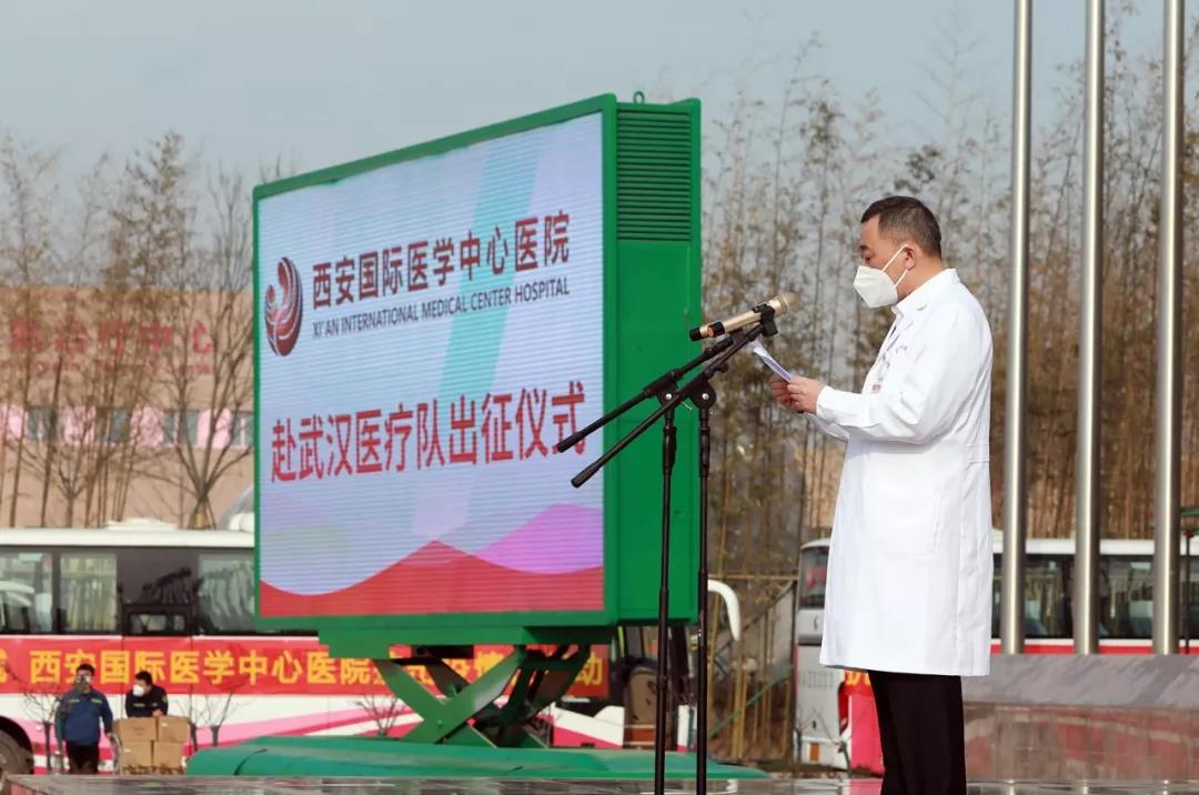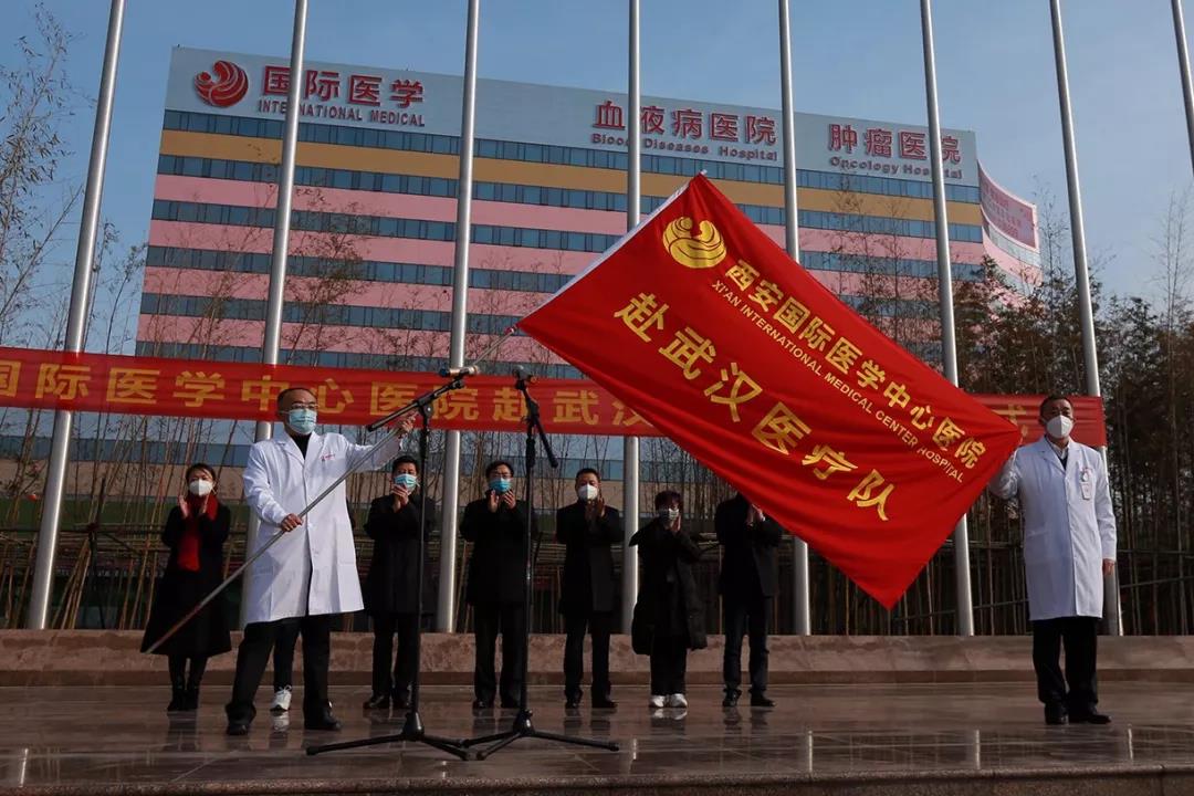 陜西省衛(wèi)健委黨組書記劉勤社說(shuō),我代表省委省政府應(yīng)對(duì)新型冠狀病毒感染肺炎疫情工作領(lǐng)導(dǎo)小組和辦公室,為大家送行。西安國(guó)際醫(yī)學(xué)中心醫(yī)院率先擔(dān)當(dāng)使命,主動(dòng)組織醫(yī)療隊(duì),感謝你們。希望大家堅(jiān)定信心、同舟共濟(jì)、科學(xué)防治、精準(zhǔn)施策,我們盼望大家凱旋歸來(lái)。