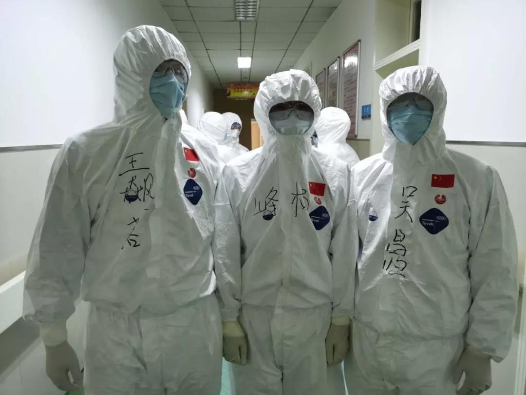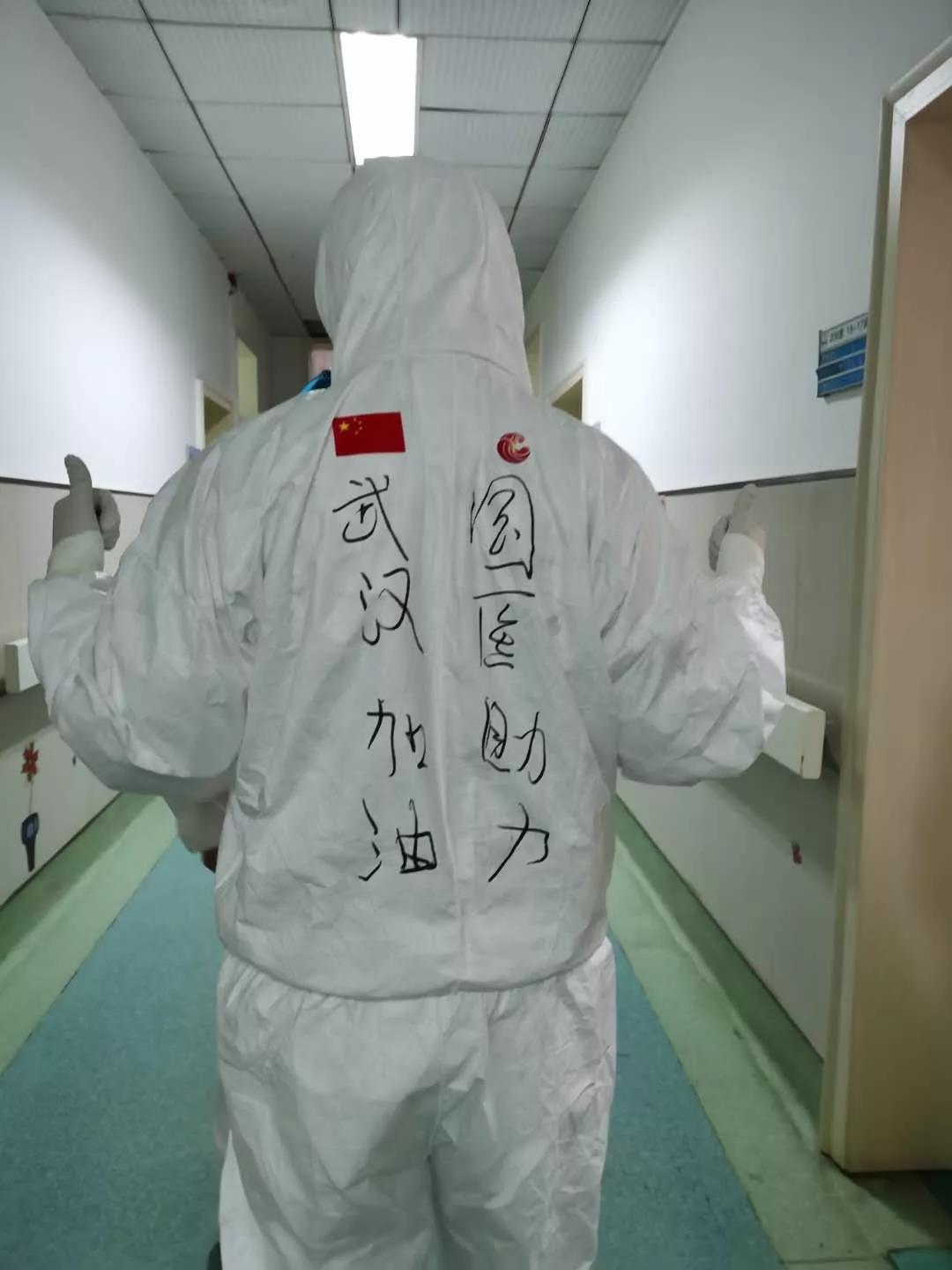 培訓后的隊員開始穿戴防護服,由于身著防護服,看不清彼此的面容,醫(yī)護人員在防護服上背后寫上自己的姓名,一個個化身暖心“大白”,彼此加油打氣,“武漢加油、國醫(yī)加油!”一字一句鼓舞人心,充滿力量。面對疫情和種種未知的風險,西安國際醫(yī)學中心醫(yī)院醫(yī)療隊隊員主動請纓,勇于上前,他們是最美逆行者!