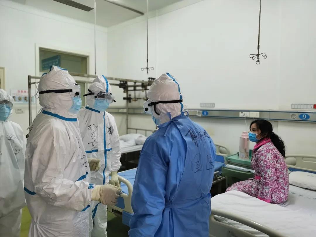 疫情就是命令,時間就是生命。趕到八院一病區(qū),他連夜熟悉情況,第二天一大早,他就帶著自己的團隊進入戰(zhàn)位——一病區(qū),逐一查看患者,掌握病情,與八院同志溝通制定救治方案。