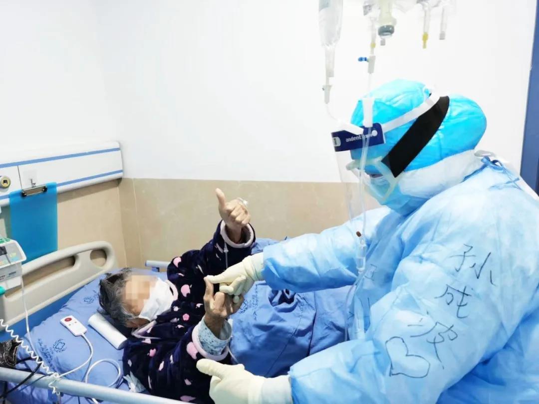 孫成波每天都會根據(jù)患者的恢復(fù)情況對鍛煉內(nèi)容進(jìn)行調(diào)整,在鍛煉過程中不斷鼓勵患者。她說:“在這一個月里,無數(shù)次感動。1床的老奶奶已經(jīng)85歲了,但是一點(diǎn)也不糊涂,每次喂飯、倒水、護(hù)理大小便時都會說‘謝謝’,我們護(hù)你平安回家,還拉了勾、蓋了章。”
