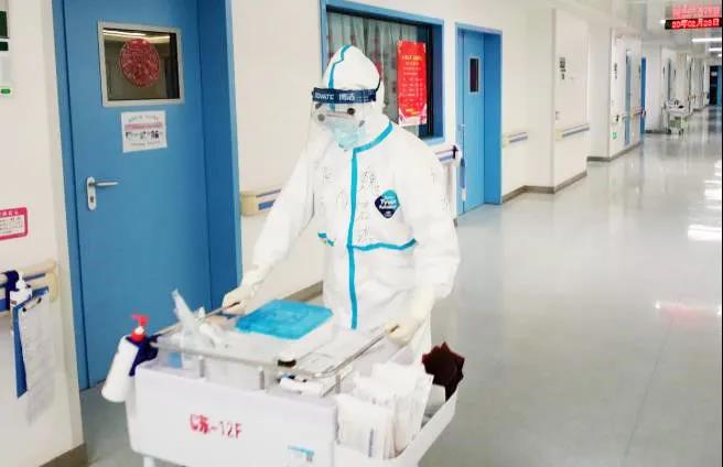 經過40分鐘的車程、層層“武裝”后,我迅速投入工作狀態(tài):處理污染區(qū)垃圾、輸液、量體溫、抽血、協(xié)助患者服藥到口、執(zhí)行醫(yī)囑等等基礎操作和生活護理。身處一線的每一秒,我都在心里給自己默敲警鐘。責任所在,不容紕漏。清楚記得初上戰(zhàn)場時,盡管已進行大量嚴格培訓,我仍感到有些緊張。但說來奇怪,當我真正接觸到這些樂觀積極的患者時,一股油然而生的親切感、使命感平復了我的忐忑。