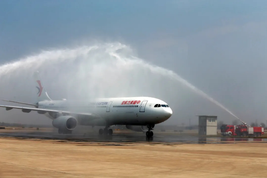 西安國際醫(yī)學(xué)中心醫(yī)院支援湖北醫(yī)療隊(duì)乘坐的飛機(jī)降落在西安咸陽機(jī)場,兩道噴薄而起的水柱形成一道亮麗的彩虹,為抗疫歸來的勇士們送上了家鄉(xiāng)人民的敬意。