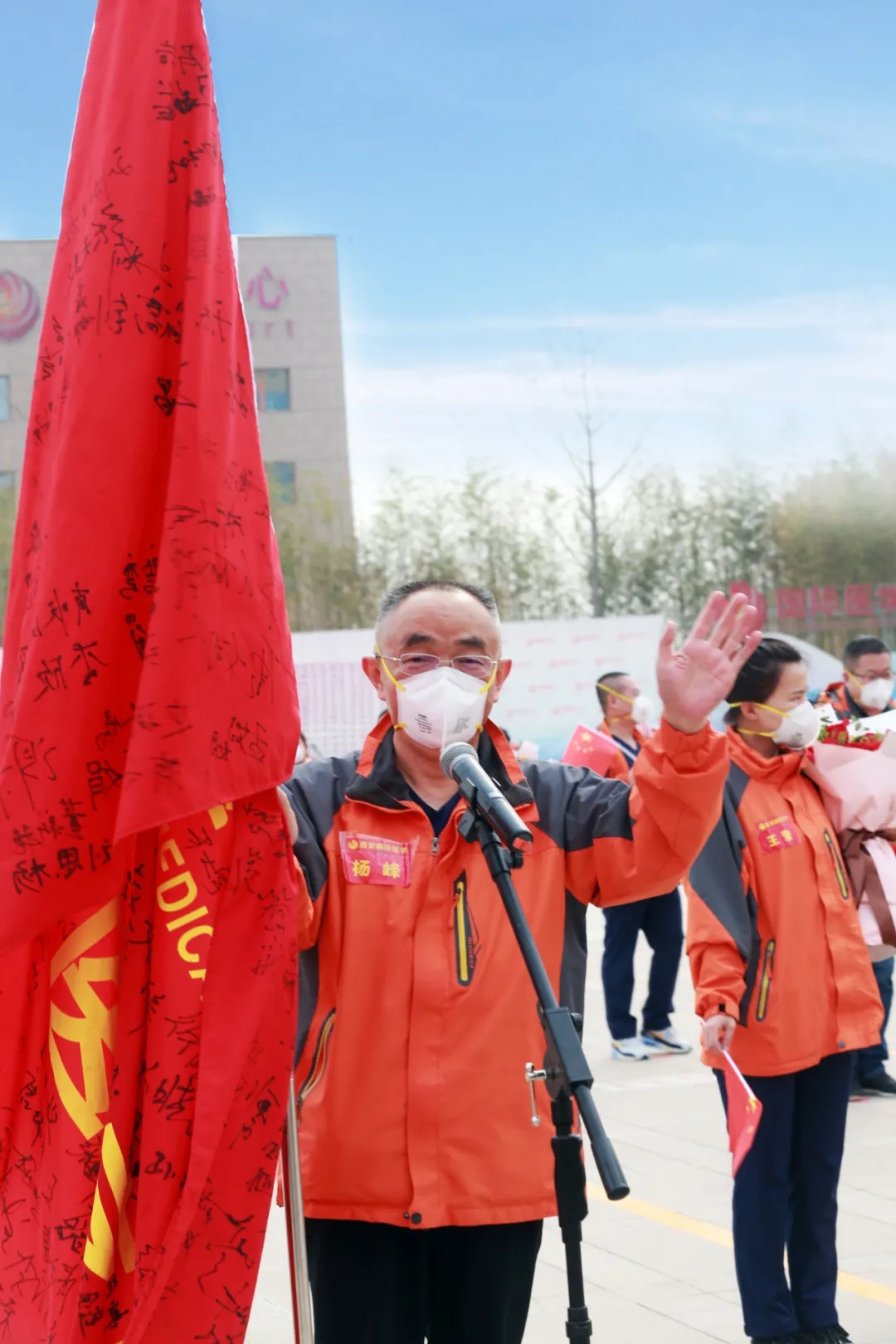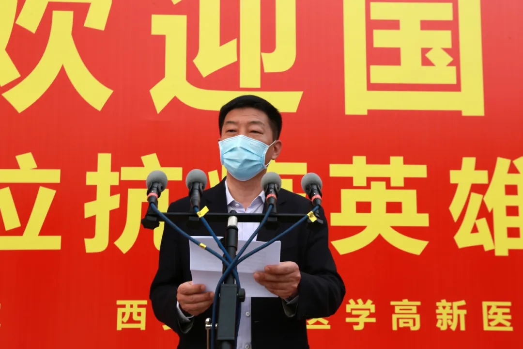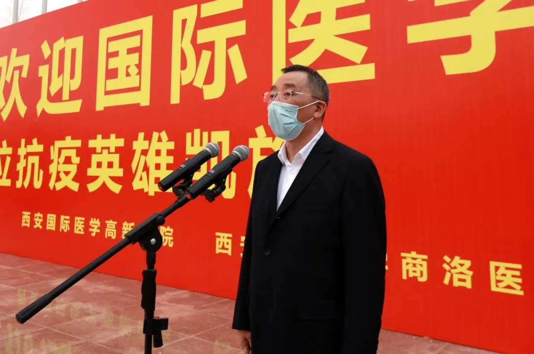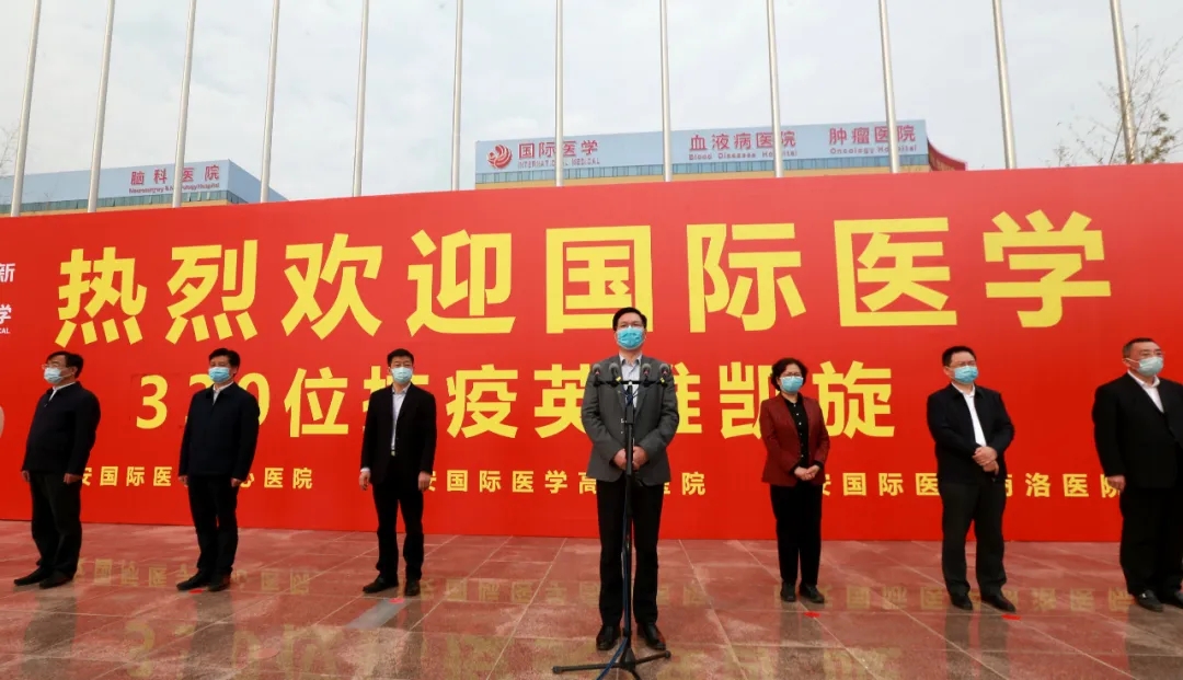 “歡迎回家!”在西安國際醫(yī)學(xué)中心的萬人廣場,陜西省副省長趙剛,國務(wù)院應(yīng)對新冠肺炎疫情聯(lián)防聯(lián)控機(jī)制綜合組第十二工作指導(dǎo)組組長、國家衛(wèi)健委人才中心主任、黨委書記張俊華,省衛(wèi)健委書記劉勤社,省衛(wèi)健委主任劉寶琴,省衛(wèi)健委副主任、省保健局局長趙嵐,省衛(wèi)健委副主任劉嶺,西安市委常委、高新技術(shù)開發(fā)區(qū)黨工委書記、西安民用航天產(chǎn)業(yè)基地黨工委書記鐘洪江,國際醫(yī)學(xué)董事長史今、總裁劉瑞軒、副總裁孫文國、西安國際醫(yī)學(xué)中心醫(yī)院院長尹強(qiáng)等出席歡迎儀式,向醫(yī)療隊(duì)表示親切的問候,并向他們無畏生死、奮戰(zhàn)一線的精神致敬!