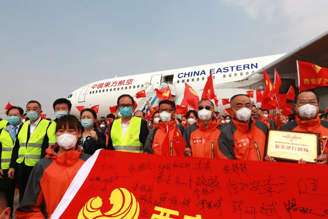 不負(fù)韶華戰(zhàn)疫情,春滿華夏迎君歸。西安國際醫(yī)學(xué)中心醫(yī)院支援湖北醫(yī)療隊(duì)225名醫(yī)護(hù)人員圓滿完成救援任務(wù),由“凱旋門”登機(jī),搭乘“勝利號”,于3月24日抵達(dá)西安。西安國際醫(yī)學(xué)中心醫(yī)院還有張欣、李晶、申歡歡、張波、馬喬璐、商江麗等6名隊(duì)員仍奮戰(zhàn)在武漢協(xié)和醫(yī)院西院。