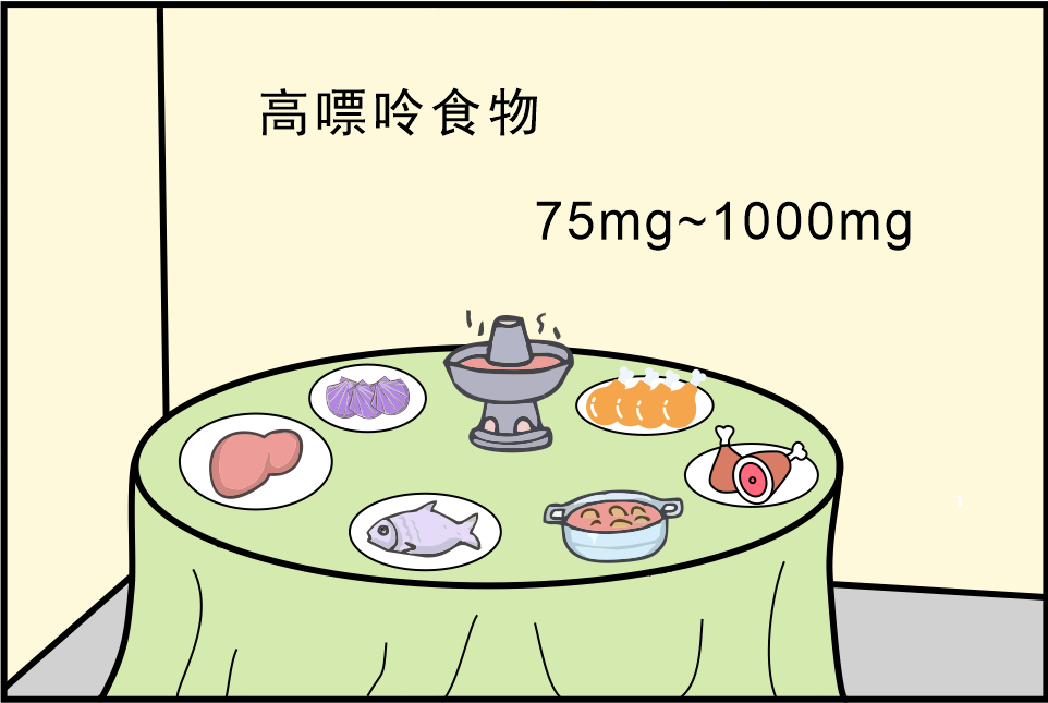 飲食控制:低嘌呤飲食,避免黨食用動(dòng)物肝臟和腎臟等內(nèi)臟、貝類、牡蠣和龍蝦等帶甲殼的海產(chǎn)品及濃肉湯和肉汁等。