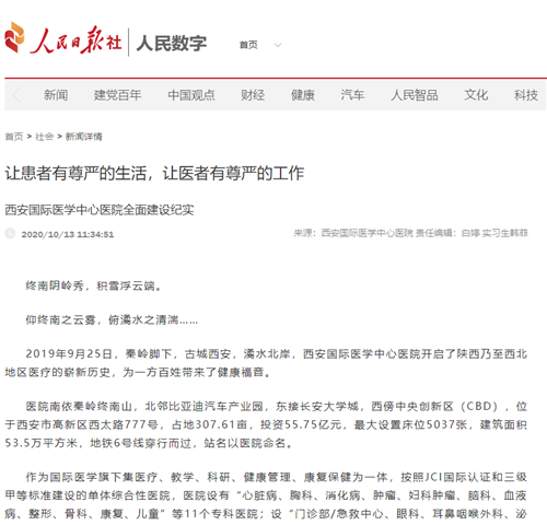 2020年央媒上的西安國際醫(yī)學中心醫(yī)院好故事。