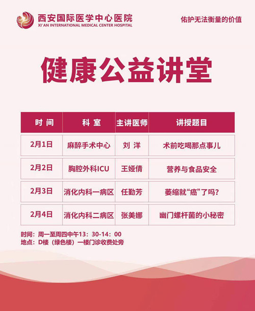西安國際醫(yī)學(xué)中心醫(yī)院—青年醫(yī)師健康公益講堂預(yù)告