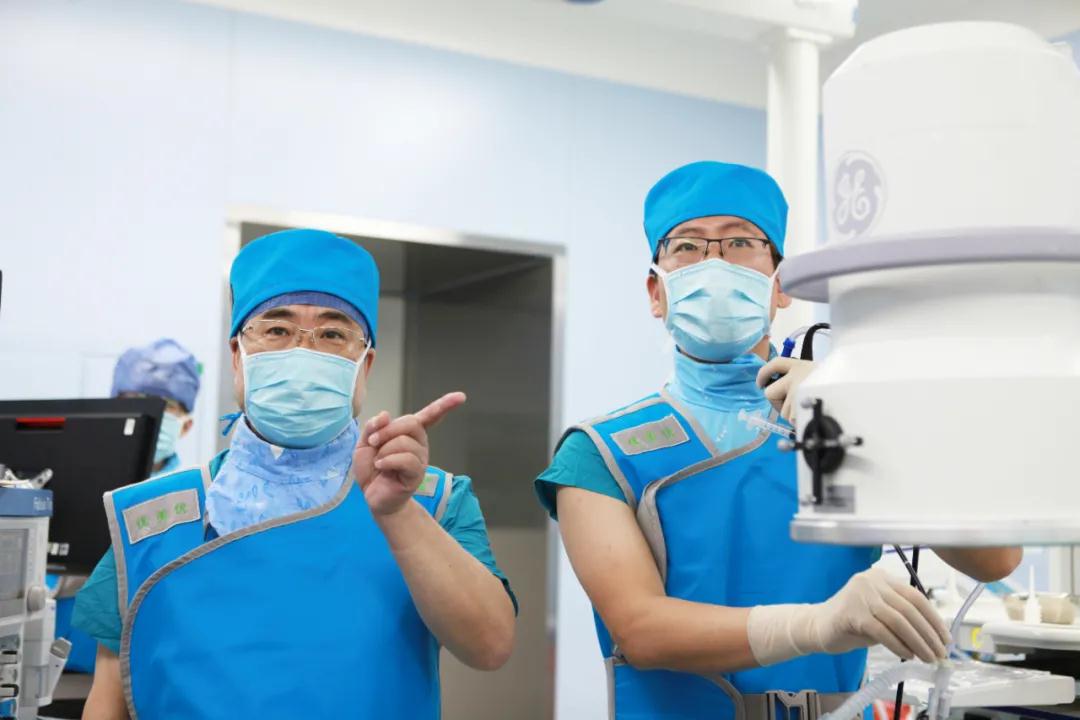 患者肺部結(jié)節(jié)位于右肺上葉后段外,需要術(shù)者操作氣管鏡右轉(zhuǎn)90?后再下轉(zhuǎn)70?-80?,難度極大。BTPNA技術(shù)發(fā)明者Herth教授也曾因?yàn)榉紊先~結(jié)節(jié)導(dǎo)致操作失敗。術(shù)中吳昌歸院長(zhǎng)站臺(tái)指導(dǎo),樊建勇醫(yī)生操作C臂X光機(jī)確定鞘管進(jìn)入病灶,超聲小探頭二次確認(rèn)出現(xiàn)低回聲區(qū)后(出現(xiàn)低回聲區(qū)說(shuō)明鞘管已進(jìn)入病灶),所有人才松了一口氣,成功完成該肺部結(jié)節(jié)活檢術(shù)。術(shù)后病理結(jié)果回報(bào)良性,劉某終于解開了多年的心結(jié)。