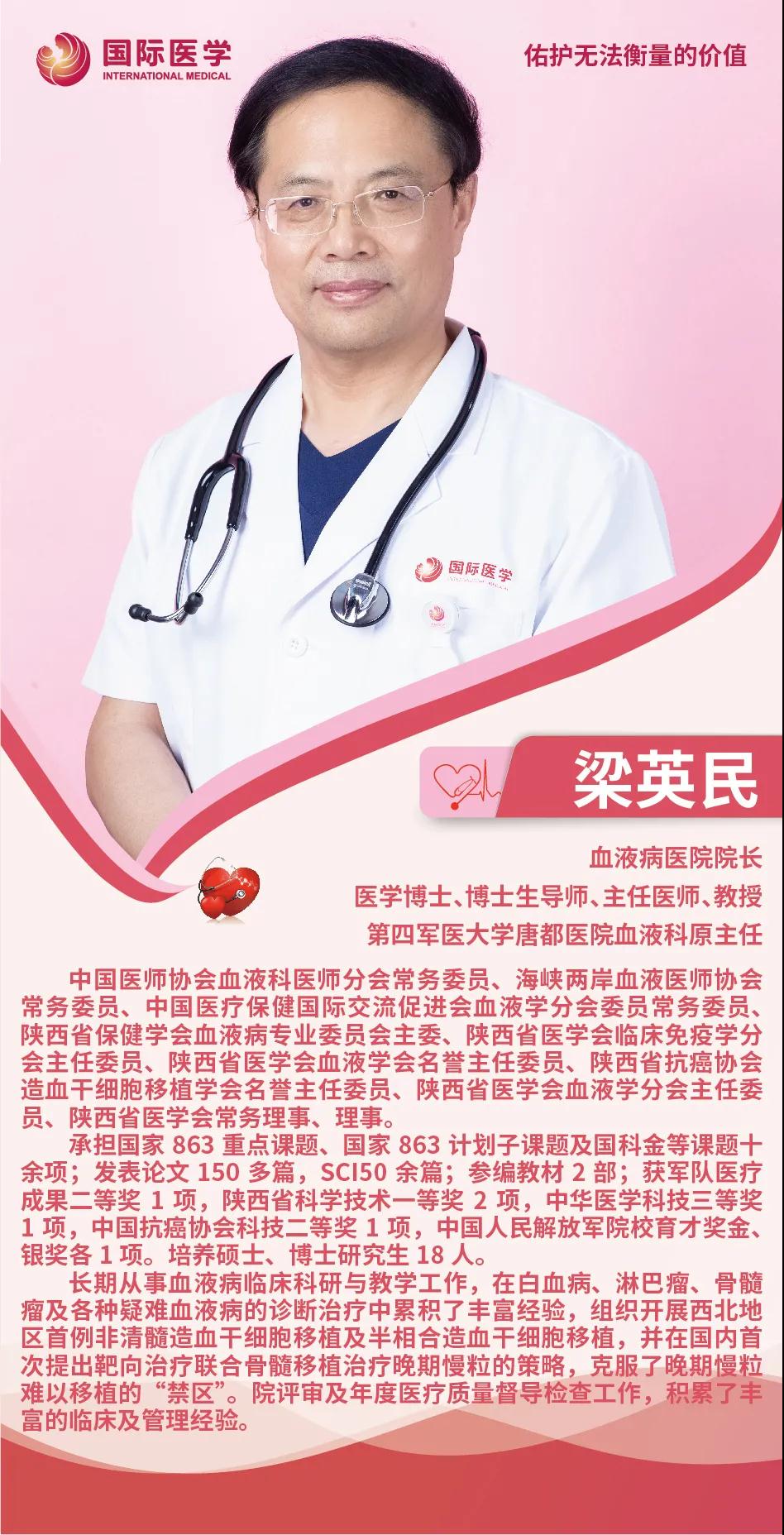 梁英民,西安國(guó)際醫(yī)學(xué)中心醫(yī)院血液病醫(yī)院院長(zhǎng),醫(yī)學(xué)博士、博士生導(dǎo)師、主任醫(yī)師、教授,第四軍醫(yī)大學(xué)唐都醫(yī)院血液科原主任,中國(guó)醫(yī)師協(xié)會(huì)血液科醫(yī)師分會(huì)常務(wù)委員、海峽兩岸血液醫(yī)師協(xié)會(huì)常務(wù)委員、中國(guó)醫(yī)療保健國(guó)際交流促進(jìn)會(huì)血液學(xué)分會(huì)委員常務(wù)委員、陜西省保健學(xué)會(huì)血液病專(zhuān)業(yè)委員會(huì)主委、陜西省醫(yī)學(xué)會(huì)臨床免疫學(xué)分會(huì)主任委員、陜西省醫(yī)學(xué)會(huì)血液學(xué)會(huì)名譽(yù)主任委員、陜西省抗癌協(xié)會(huì)造血干細(xì)胞移植學(xué)會(huì)名譽(yù)主任委員,曾任中華醫(yī)學(xué)會(huì)血液學(xué)分會(huì)常務(wù)委員、陜西省醫(yī)學(xué)會(huì)血液學(xué)分會(huì)主任委員、陜西省醫(yī)學(xué)會(huì)常務(wù)理事、理事。