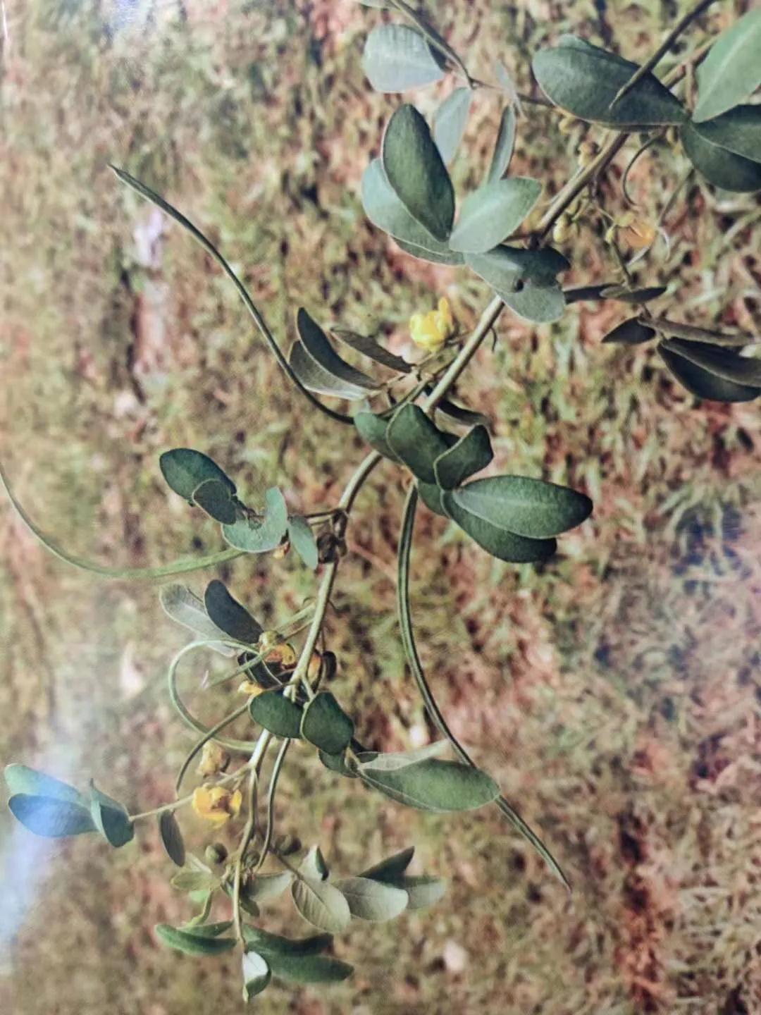 一年生草本。莖被短柔毛。雙數(shù)羽狀復(fù)葉互生,小葉3對,每對小葉的葉軸上有棒狀腺體1枚;小葉片倒卵形,長1.5~6.5cm,寬 0.8~3cm,邊緣全緣,嫩時兩面被短柔毛;托葉早落?;S色,成對腋生;萼片5;花瓣5;雄蕊10,3枚不育,能育雄蕊花藥頂孔開裂。莢果細長四棱柱形,長約15cm。種子多數(shù),菱狀方形,長3~4mm,光滑,淺棕綠色,兩側(cè)各有1條線形的淺色斜凹紋