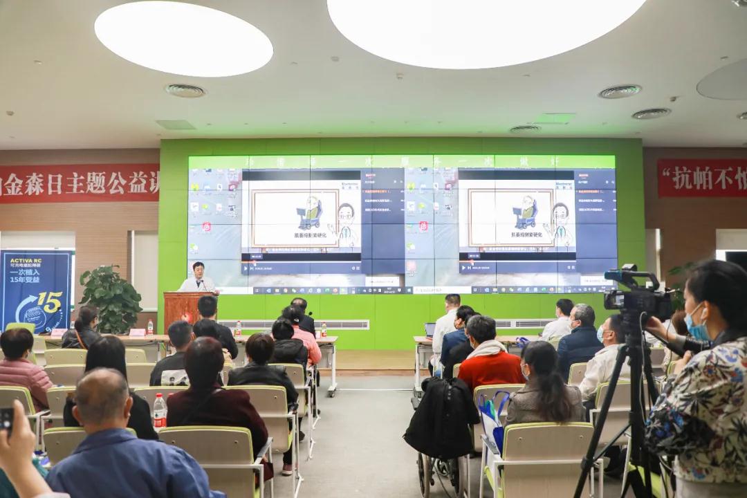 講座環(huán)節(jié),神經(jīng)內(nèi)科葛芳芳醫(yī)生從帕金森病的病因、病理、癥狀、評估等方面詳細(xì)介紹了什么是帕金森病以及藥物治療;空軍軍醫(yī)大學(xué)唐都醫(yī)院功能神經(jīng)外科主任王學(xué)廉詳細(xì)闡述了帕金森病的外科治療:腦起搏器手術(shù),用通俗易懂的語言講述了腦起搏器原理、組成、手術(shù)過程,以及術(shù)后效果;腦科醫(yī)院神經(jīng)外科功能組組長靳俊功醫(yī)生介紹了DBS的術(shù)后管理,包括首次開機(jī)、參數(shù)設(shè)定,家屬如何配合程控等;神經(jīng)外科康復(fù)負(fù)責(zé)人李萌醫(yī)生從康復(fù)治療和居家護(hù)理兩方面強(qiáng)調(diào)了康復(fù)治療的重要性;醫(yī)務(wù)人員還帶領(lǐng)大家做康復(fù)操,為帕金森病患者及家屬傳遞堅(jiān)持康復(fù)鍛煉的科學(xué)理念。