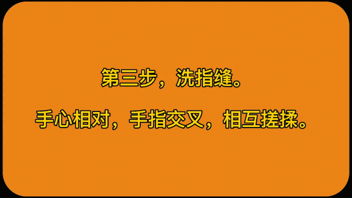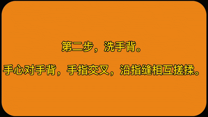 3、認真揉搓雙手至少 15s,注意清洗雙手所有皮膚,包括指背、指尖和指縫,具體揉搓步驟(即七步洗手法步驟):