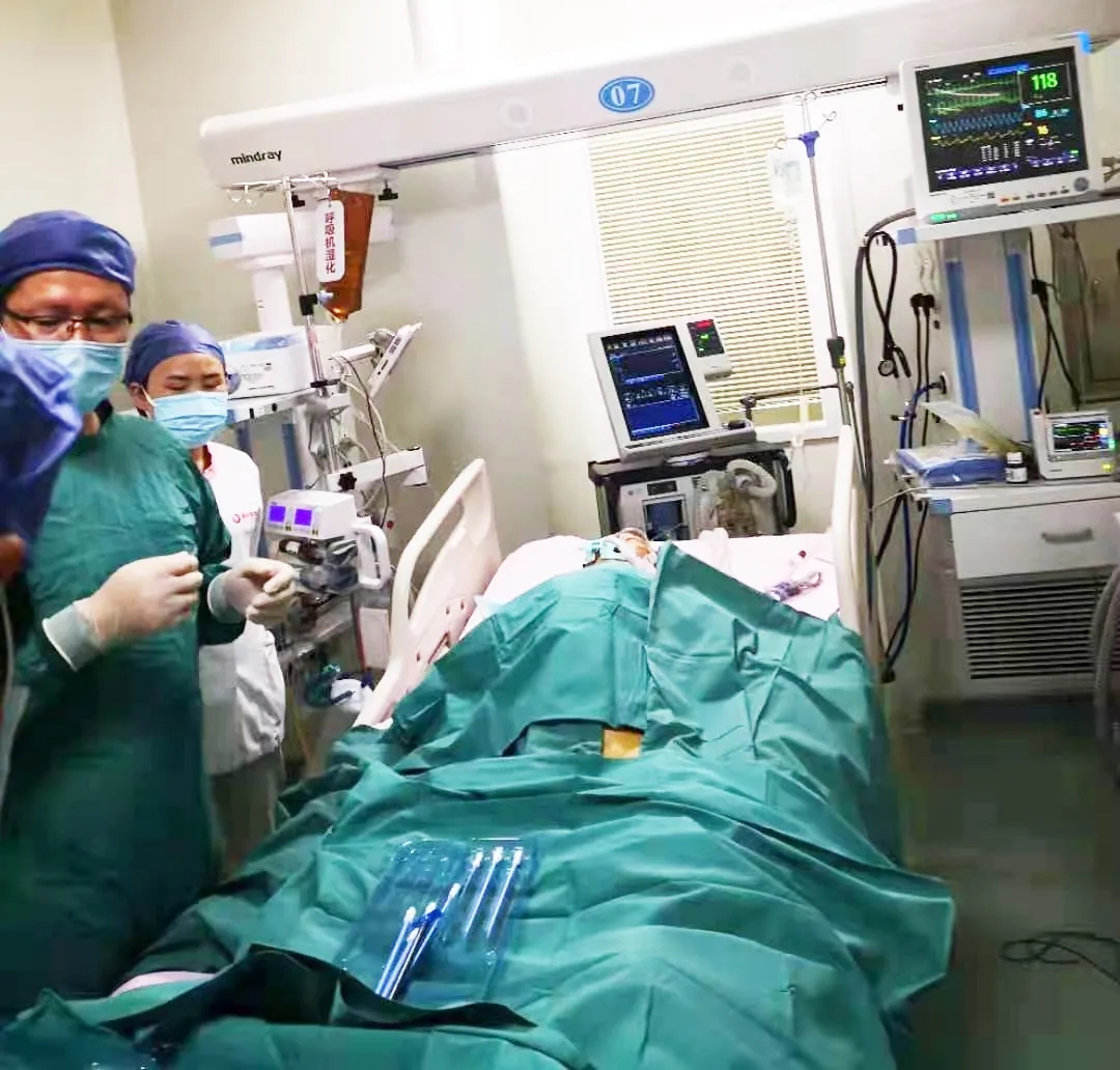 時(shí)間就是生命,治療設(shè)備第一時(shí)間到位后,胸科醫(yī)院吳昌歸院長(zhǎng)、呼吸內(nèi)科重癥監(jiān)護(hù)室陳麗展主任、心外科程亮主任、程維平醫(yī)生等人立刻開始緊張的搶救工作。醫(yī)護(hù)人員一邊進(jìn)行動(dòng)靜脈置管并連接VV-ECMO的管路,一邊進(jìn)行抗感染、輸血、維持生命體征,吸痰等營(yíng)養(yǎng)支持治療。直到入院次日下午3點(diǎn)左右,患者病情趨于穩(wěn)定,搶救才告一段落。在醫(yī)護(hù)人員的精心治療下,患者病情逐漸好轉(zhuǎn),13天后成功脫離體外膜肺、停用VV-ECMO,16天后拔除氣管插管,能夠清楚的和人溝通交流,恢復(fù)情況讓醫(yī)護(hù)興奮,更讓家屬激動(dòng)不已。