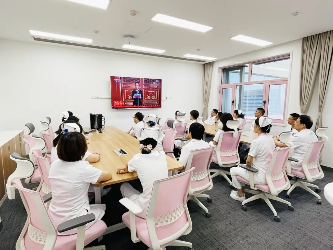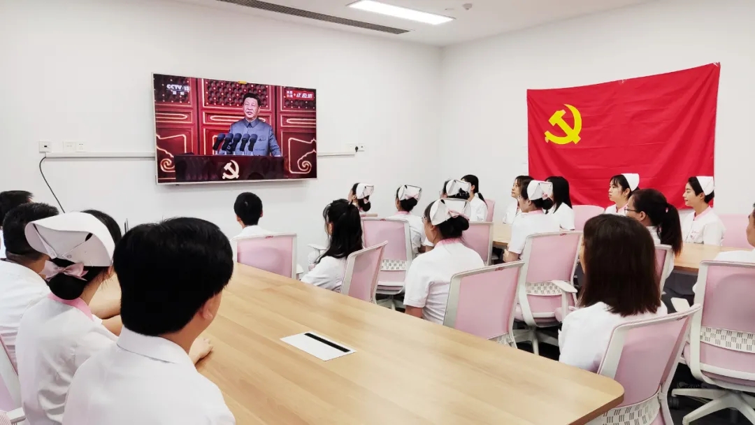 機(jī)關(guān)黨支部李曉丹在保障樓6樓收看了大會(huì)直播盛況,在聆聽習(xí)近平總書記講話后心潮澎湃:“此時(shí)此刻有兩句話能表達(dá)我內(nèi)心的感受,有一種幸福是‘我生于中國’!有一種驕傲叫‘我是中國共產(chǎn)黨員’!”這位從事護(hù)理工作4年的優(yōu)秀青年共產(chǎn)黨員,感恩黨的多年培養(yǎng),感恩偉大的祖國,讓她能在擅長的領(lǐng)域綻放光芒、為人民服務(wù)。她表示將聽黨話、感黨恩、跟黨走,勇?lián)鷷r(shí)代賦予的重任,將實(shí)現(xiàn)個(gè)人價(jià)值與國家社會(huì)發(fā)展緊密結(jié)合,在護(hù)理部教學(xué)培訓(xùn)工作中,理論結(jié)合實(shí)踐,為護(hù)理人才的培養(yǎng)與輸送奠定堅(jiān)實(shí)的基礎(chǔ),在平凡的工作中成就不平凡的自我價(jià)值!