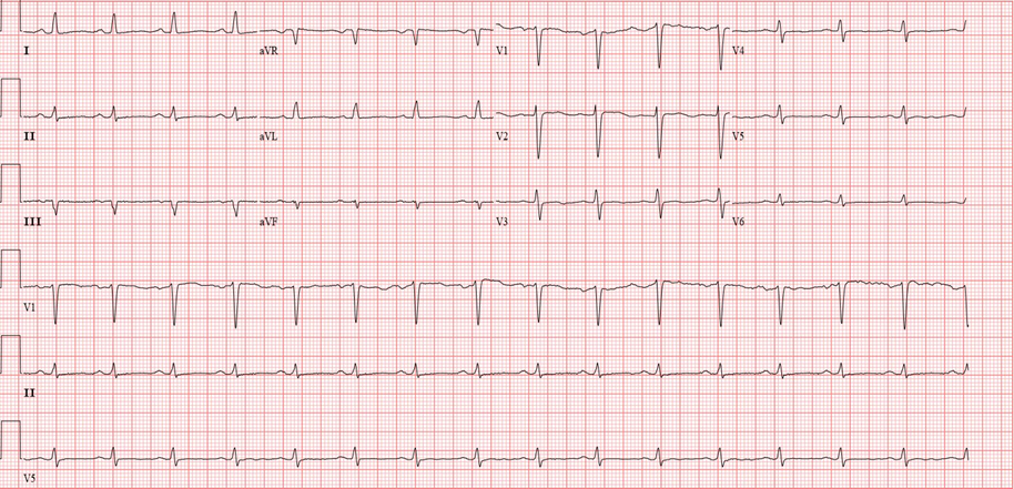 一位年輕女性來做完心電圖后,心電圖看起來感覺心臟跳得“沒勁”,具體表現(xiàn)在波幅“矮了”,即QRS電壓低,這種表現(xiàn)似乎就和這位患者沒力氣相符。