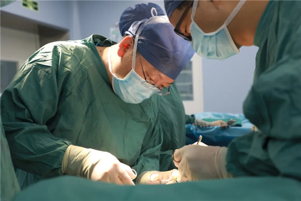 做好了充分準(zhǔn)備與預(yù)案,手術(shù)臺前的劉曉敏鎮(zhèn)定專注,在分離切斷王金花的甲狀腺懸韌帶后,他抽絲剝繭,一根根處理甲狀腺上極血管,繼而結(jié)扎切斷甲狀腺中、下的靜脈、動脈,在由峽部切斷處起始分離甲狀腺背面時,劉曉敏仔細(xì)辨認(rèn)喉返神經(jīng)和甲狀旁腺,確保不傷分毫。一般情況下,手術(shù)至此可以順利結(jié)束??赏踅鸹ㄊ俏焕淆g患者,由于氣管軟化,加上腫塊長久壓迫,氣管就像失去回彈力的彈簧,從醫(yī)學(xué)角度看,患者已可以治愈,短期也無生命大礙,可彈不起來的“彈簧”還會重新聚攏在一起,讓老太太喘不上氣。一次手術(shù)能解決的問題,絕不讓患者再受二茬罪,劉曉敏又對王金花實(shí)施氣管懸吊術(shù),把“癱瘓”了的氣管朝兩邊拉起,給氣管留出足夠的空間出氣。