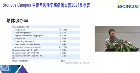 據(jù)歐陽海峰介紹,本次參評病例是一項單中心隊列研究的病例數(shù)據(jù)。部分肺部結(jié)節(jié)、肺部包塊患者存在診斷困難的問題?;颊咔捌谠诙嗉裔t(yī)院行氣管鏡檢查,均無法明確診斷。通過歐陽海峰團(tuán)隊LungPro導(dǎo)航 超細(xì)MP290F支氣管鏡 1.1mm冷凍探針 rEBUS的TBCB術(shù)式,診斷率高達(dá)90%以上。對于仍無法明確診斷的少部分病例,通過BTPNA、LungPro-TBNA、TTNB等術(shù)式也獲得了明確診斷。經(jīng)文獻(xiàn)檢索,此項研究是該術(shù)式的首次報道。目前,困難取材的肺部及縱隔疾病是歐陽海峰團(tuán)隊主要病種之一,也是引領(lǐng)性特色技術(shù)之一。