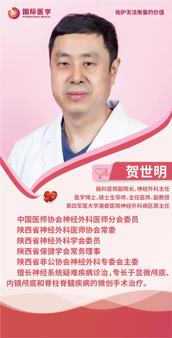 學一行鉆一行,干一行愛一行。憑著一股好勝心,賀世明在校期間成績出色、表現(xiàn)優(yōu)異。1995年畢業(yè)留校,被分到第四軍醫(yī)大學唐都醫(yī)院。經(jīng)過深思熟慮,賀世明選擇神經(jīng)外科作為自己的專業(yè)方向,師從我國著名神經(jīng)外科專家、時任唐都醫(yī)院神經(jīng)外科主任高國棟教授。之后,他又考取高國棟教授的碩士、博士研究生,2005年獲醫(yī)學博士學位。