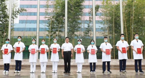 最后,劉延彤院長(zhǎng)助理帶領(lǐng)全體新入職員工舉起右手,莊嚴(yán)宣誓,鏗鏘有力的誓言在萬人廣場(chǎng)久久回蕩。