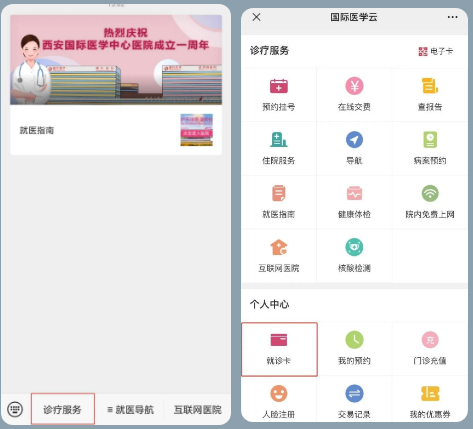 (2)已經(jīng)有就診卡的人員,無(wú)需再進(jìn)行綁卡,直接點(diǎn)擊【就診卡】查看個(gè)人ID號(hào)。