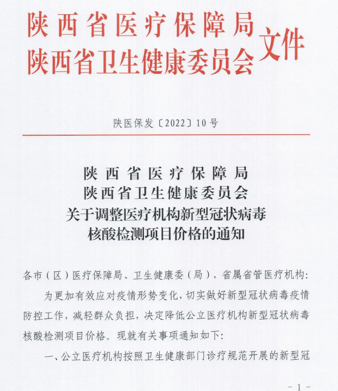 關于調(diào)整醫(yī)療機構新型冠狀病毒核酸檢測項目價格的通知