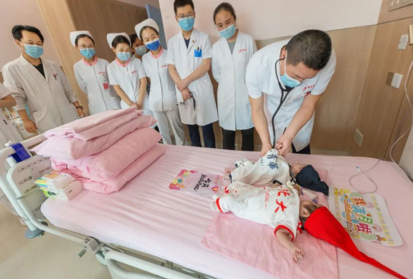 “樂樂、朵朵(均為化名)長(zhǎng)大了上清華、北大……”西安國際醫(yī)學(xué)中心醫(yī)院心臟外科病房傳出陣陣歡笑,兩個(gè)剛滿月的寶寶分別身著“清華”、“北大”連體衣,并排躺在病床上,接受來自家人和醫(yī)護(hù)人員的祝福。