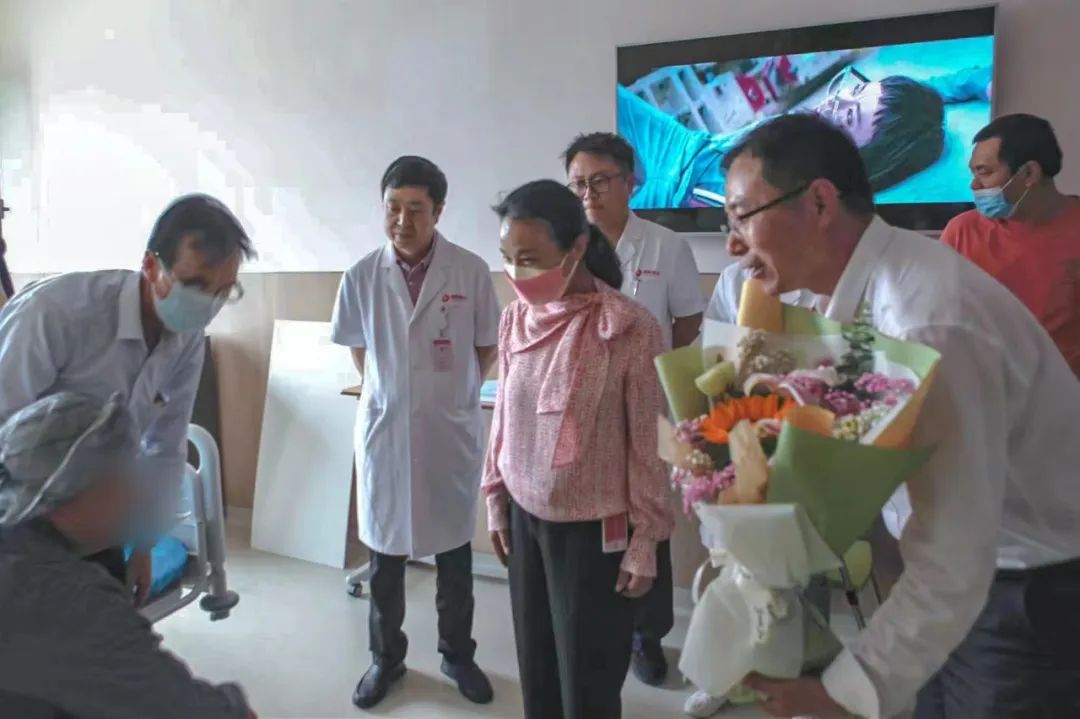 護(hù)士節(jié)前一日李女士出院時(shí),國際醫(yī)學(xué)副董事長王愛萍、腦科醫(yī)院副院長賀世明為她送上鮮花和救助金,希望她早日康復(fù),和抗疫中千千萬萬的白衣天使一樣,繼續(xù)發(fā)光發(fā)熱。