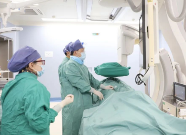 得知了鐘老師的訴求,殷占新心里有了把握。經(jīng)過全面評估,鐘老師的肝部腫瘤小于五厘米,可以采用CT引導下射頻消融術(shù)進行治療。射頻消融術(shù)就是向腫瘤組織中插入射頻電極探針,利用高頻電流產(chǎn)生的熱能,導致腫瘤組織壞死,而對正常組織損傷較小的一種微創(chuàng)治療,也被譽為是除手術(shù)以外最有效的一個局部治療手段。