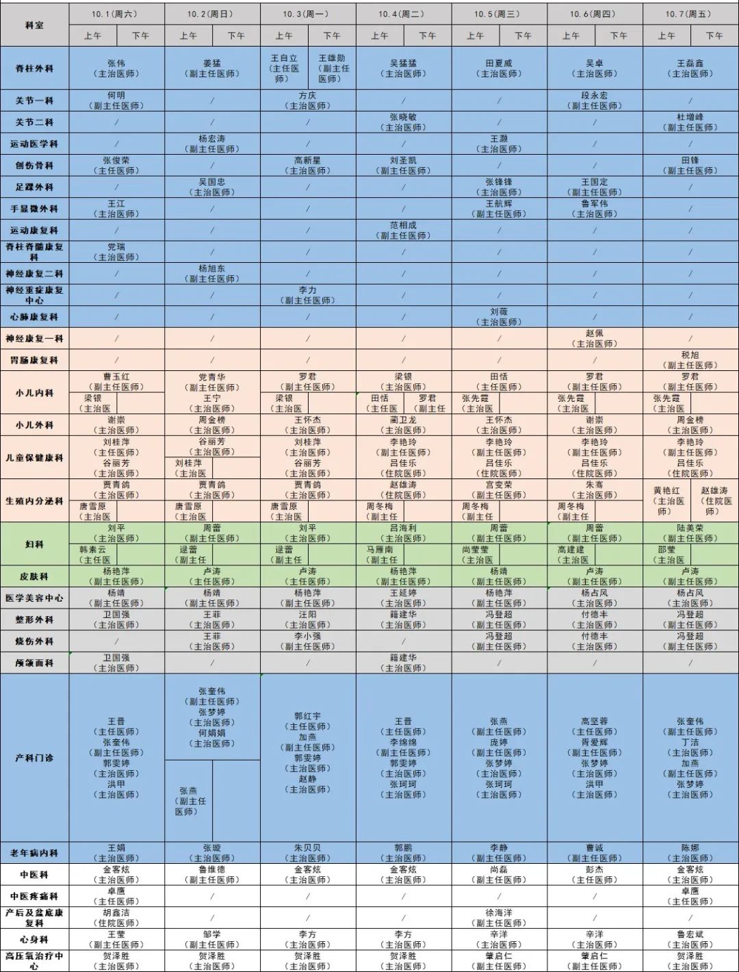 西安國(guó)際醫(yī)學(xué)中心醫(yī)院北院區(qū)門診出診表