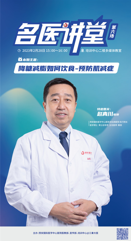 2月28日,消化病醫(yī)院執(zhí)行院長趙青川教授做客《名醫(yī)講堂》第六期,以“降糖減脂和預(yù)防肌減癥”為主題,為各??漆t(yī)院、科室中青年醫(yī)師分享了自己在肌減癥疾病認(rèn)識及飲食調(diào)節(jié)方面的經(jīng)驗(yàn)。