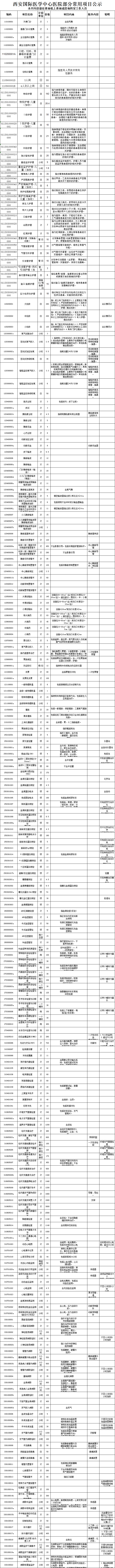 西安國際醫(yī)學(xué)中心醫(yī)院部分常用項目公示