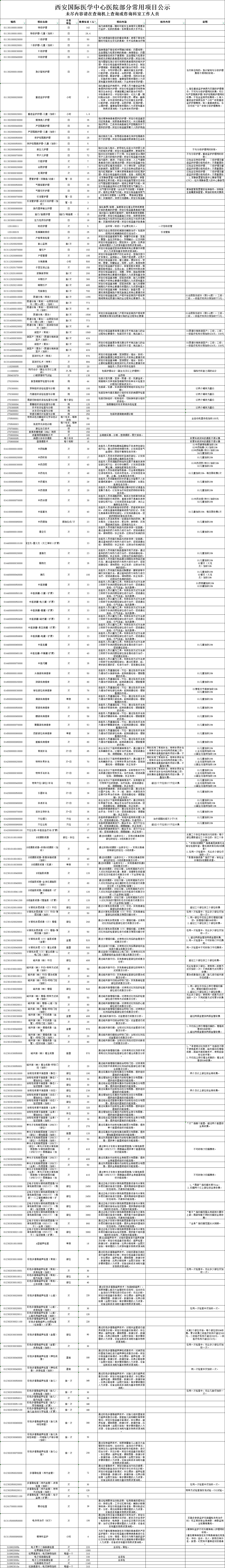 西安國際醫(yī)學中心醫(yī)院部分常用項目公示