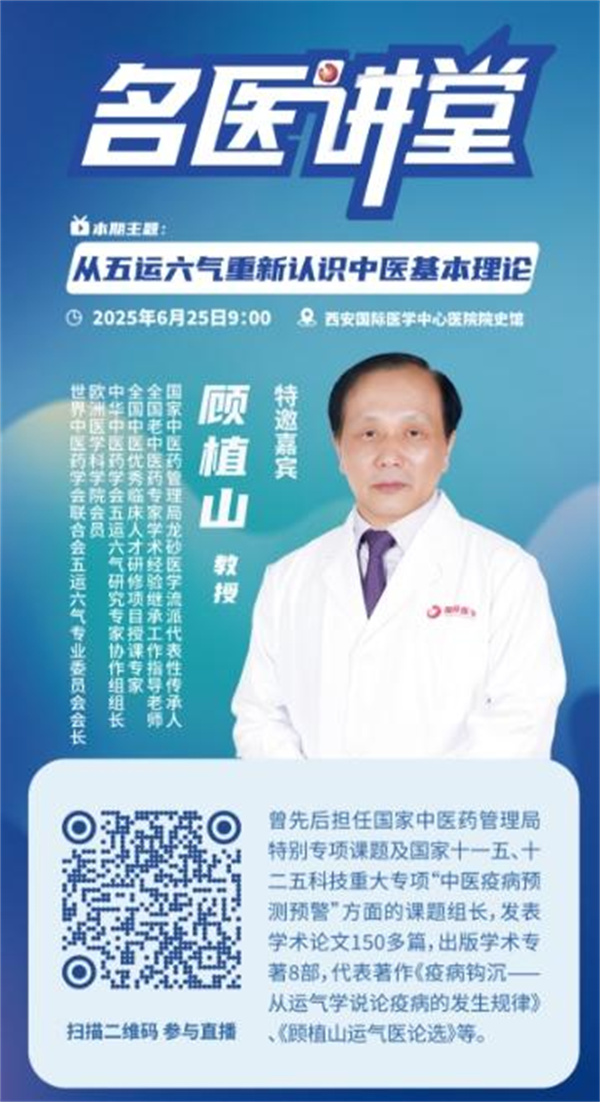 6月25日上午,由西安國際醫(yī)學(xué)中心醫(yī)院主辦的"名醫(yī)講堂"系列學(xué)術(shù)活動在院史館舉行。本次講座邀請到國家中醫(yī)藥管理局龍砂醫(yī)學(xué)流派代表性傳承人顧植山教授,作《從五運(yùn)六氣重新認(rèn)識中醫(yī)基本理論》的專題報告。西安國際醫(yī)學(xué)中心醫(yī)院尹強(qiáng)院長、中醫(yī)醫(yī)院趙曉平院長、中醫(yī)二科卓鷹主任及科室醫(yī)護(hù)人員、百余名中醫(yī)從業(yè)者及愛好者參會學(xué)習(xí),重新認(rèn)識博大精深的中醫(yī)理論。