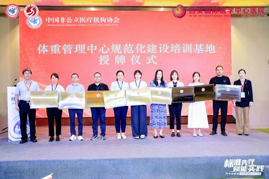 為破解這一困局,中國非公立醫(yī)療機(jī)構(gòu)協(xié)會積極推進(jìn)標(biāo)準(zhǔn)化與協(xié)同化建設(shè),經(jīng)嚴(yán)格評審,對40家機(jī)構(gòu)授予“體重管理中心規(guī)范化建設(shè)培訓(xùn)基地”稱號,并為到場的35家機(jī)構(gòu)代表舉行授牌儀式。