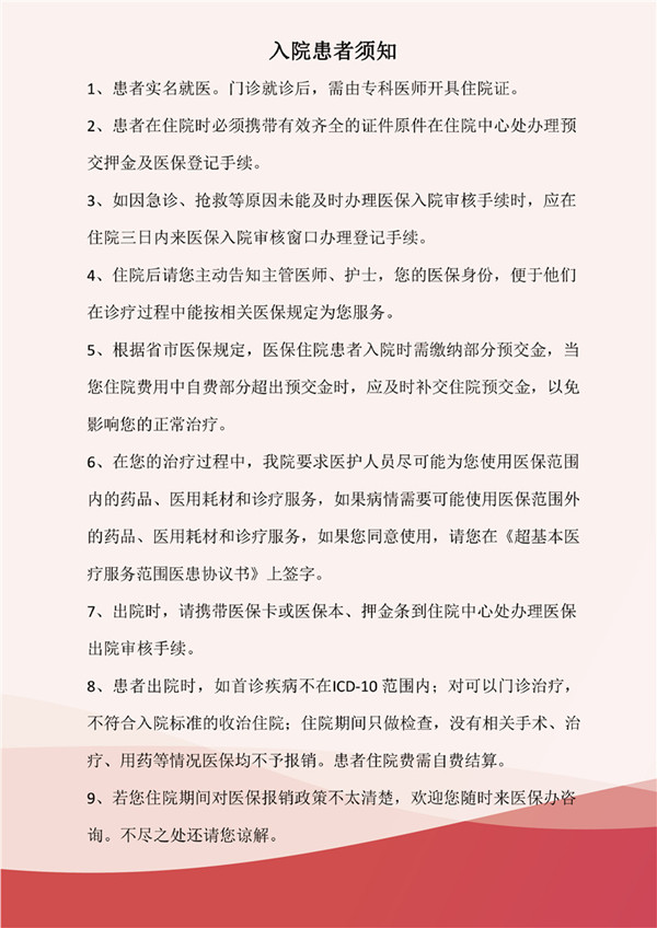 首頁(yè) > 就醫(yī)指南 > 出入院須知